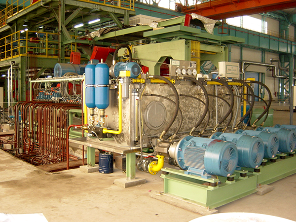 熱處理線液壓系統(tǒng)通過(guò)壓力油箱與多閥組協(xié)同控制,實(shí)現(xiàn)爐門(mén)啟閉(速度0.1-0.5m/s)、工件傳送(定位精度±0.2mm)及淬火介質(zhì)噴射(壓力波動(dòng)±0.5MPa),其系統(tǒng)壓力范圍5-20MPa,油溫控制精度±5℃。