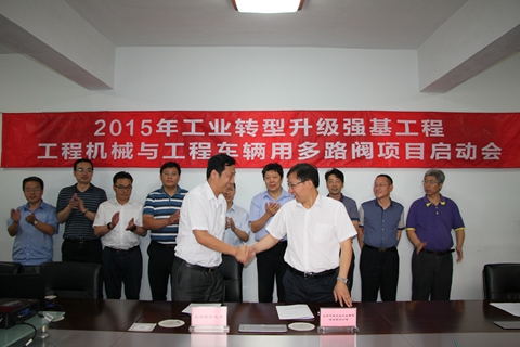 2015年7月25日,北京華德液壓工業(yè)集團(tuán)有限責(zé)任公司承擔(dān)的工信部2015年工業(yè)轉(zhuǎn)型升級(jí)強(qiáng)基工程《工程機(jī)械與工程車輛用多路閥實(shí)施方案》項(xiàng)目在華德液壓密云制造基地正式啟動(dòng)。工信部、中國機(jī)械工業(yè)聯(lián)合會(huì)、北京市經(jīng)濟(jì)和信息化委員會(huì)、北京京城機(jī)電控股公司相關(guān)領(lǐng)導(dǎo)以及項(xiàng)目各合作單位:徐工集團(tuán)工程機(jī)械有限公司建設(shè)機(jī)械分公司、徐州徐工基礎(chǔ)工程機(jī)械有限公司、浙江大學(xué)、燕山大學(xué)、北京航空航天大學(xué)、北京機(jī)械工業(yè)自動(dòng)化研究所、北京聯(lián)合大學(xué)主要領(lǐng)導(dǎo)出席啟動(dòng)儀式。