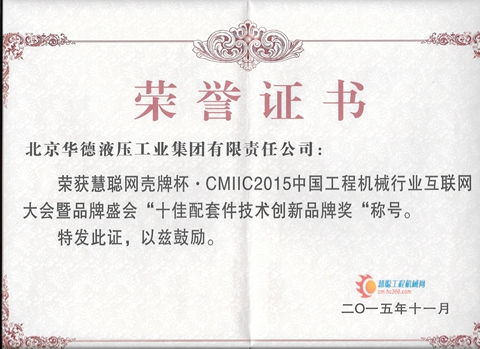 11月9日,以“破局新常態(tài) 贏享中國”為主題的殼牌杯-CMIIC2015中國工程機械行業(yè)互聯(lián)網大會暨品牌盛會于湖南長沙隆重舉行,來自國家部委、行業(yè)協(xié)會的相關領導與眾多行業(yè)專家、企業(yè)精英以及終端用戶共計400余人出席了本次大會。大會上對榮獲工程機械“十佳配套件創(chuàng)新品牌”稱號的企業(yè)進行了頒獎,華德液壓憑借過硬的技術水平、先進的創(chuàng)新能力、優(yōu)質的產品服務、良好的業(yè)內口碑,以綜合分數第一的優(yōu)勢,榮獲此項稱號。